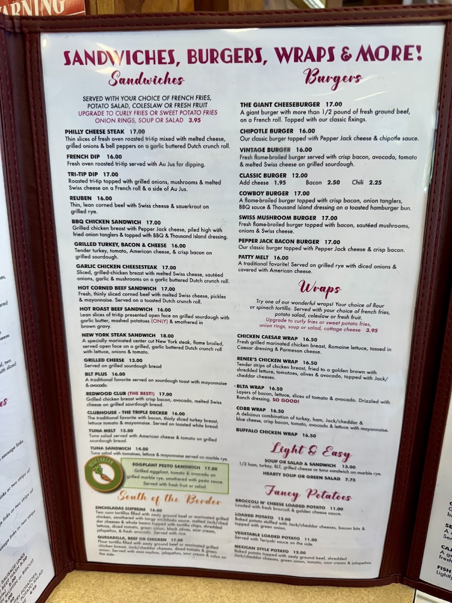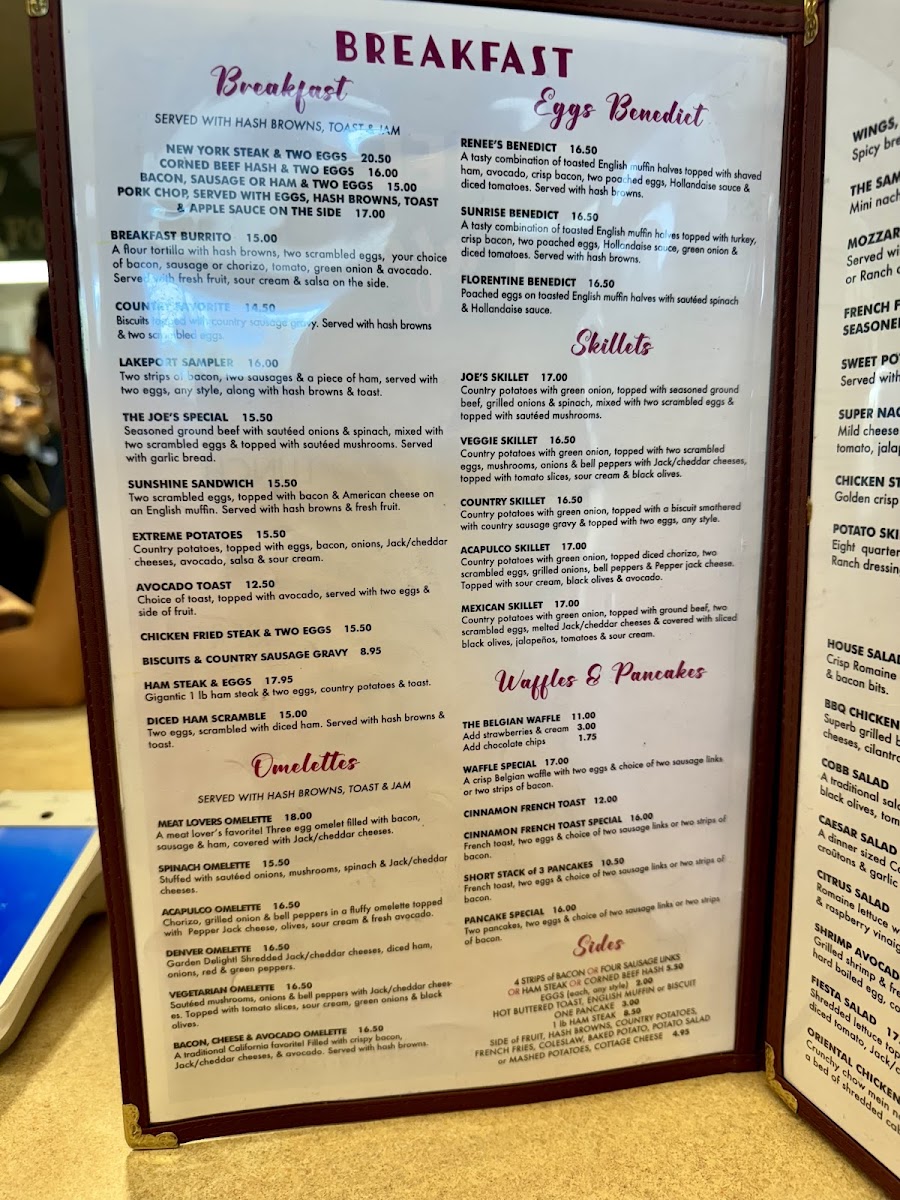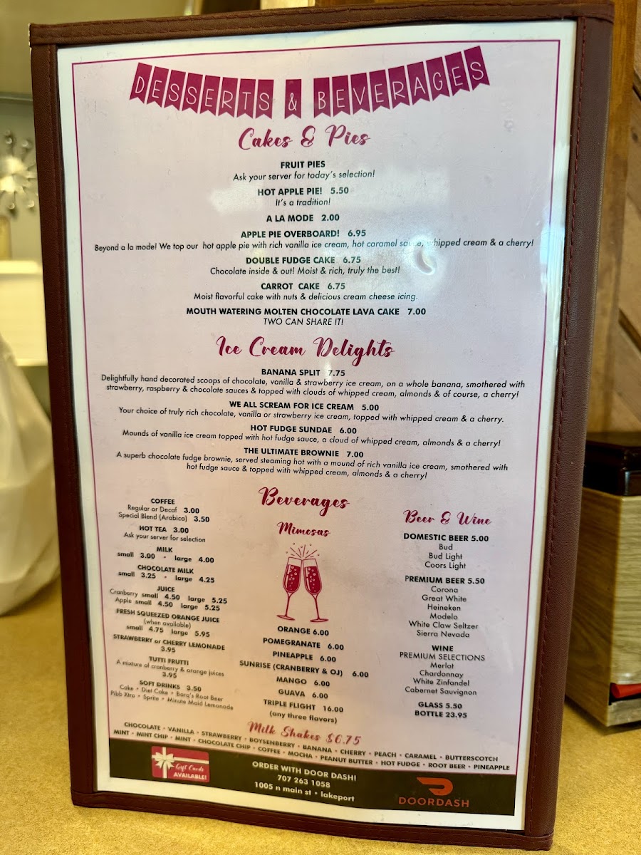 Overall, the menu supports both quick bites and more relaxed dining occasions, offering breakfast, lunch, and dessert options suitable for individual meals or casual group dining.
